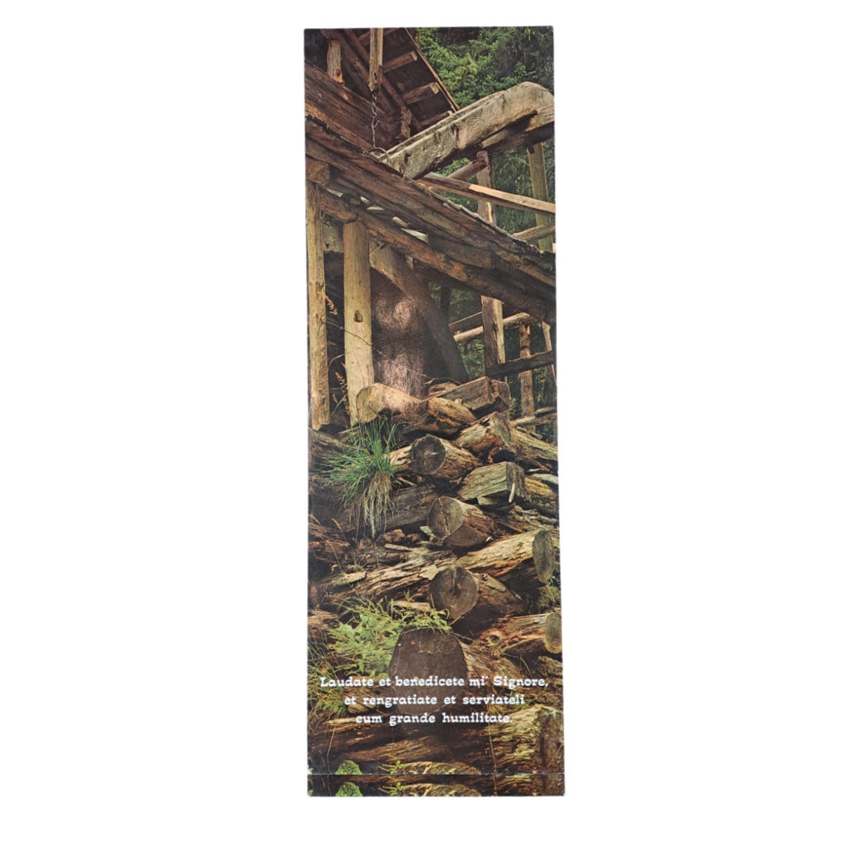 Cartoncino con scritta che riprende il cantico delle creature: