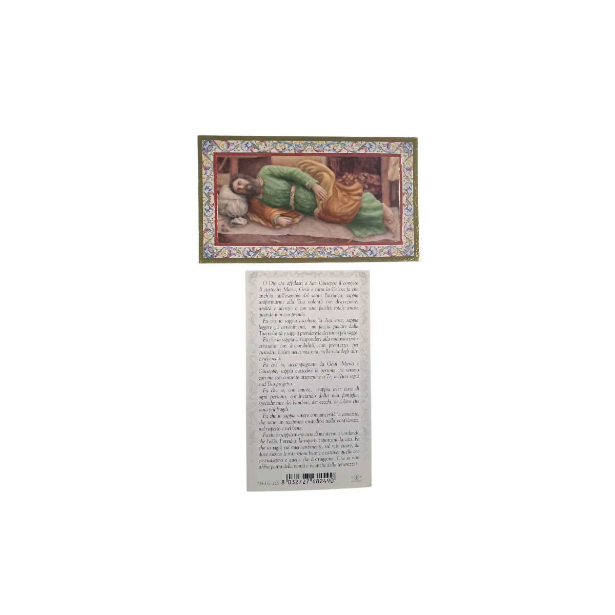 Santino San Giuseppe Dormiente con preghiera sul retro