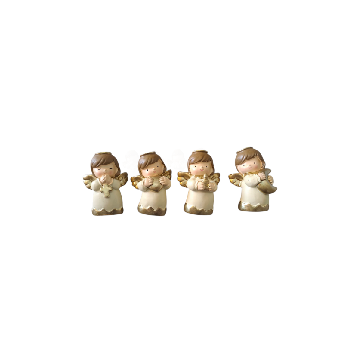 Angioletto in resina in quattro versioni: con croce e mani giunte, con candelina, con cuore, con luna.