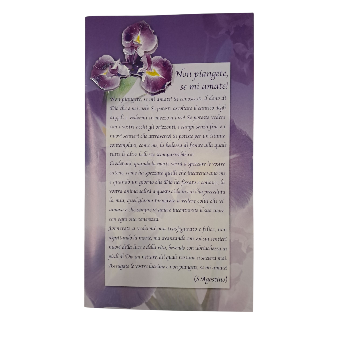 Biglietto con la famosa frase di Sant'Agostino "Non piangete, se mi amate!"