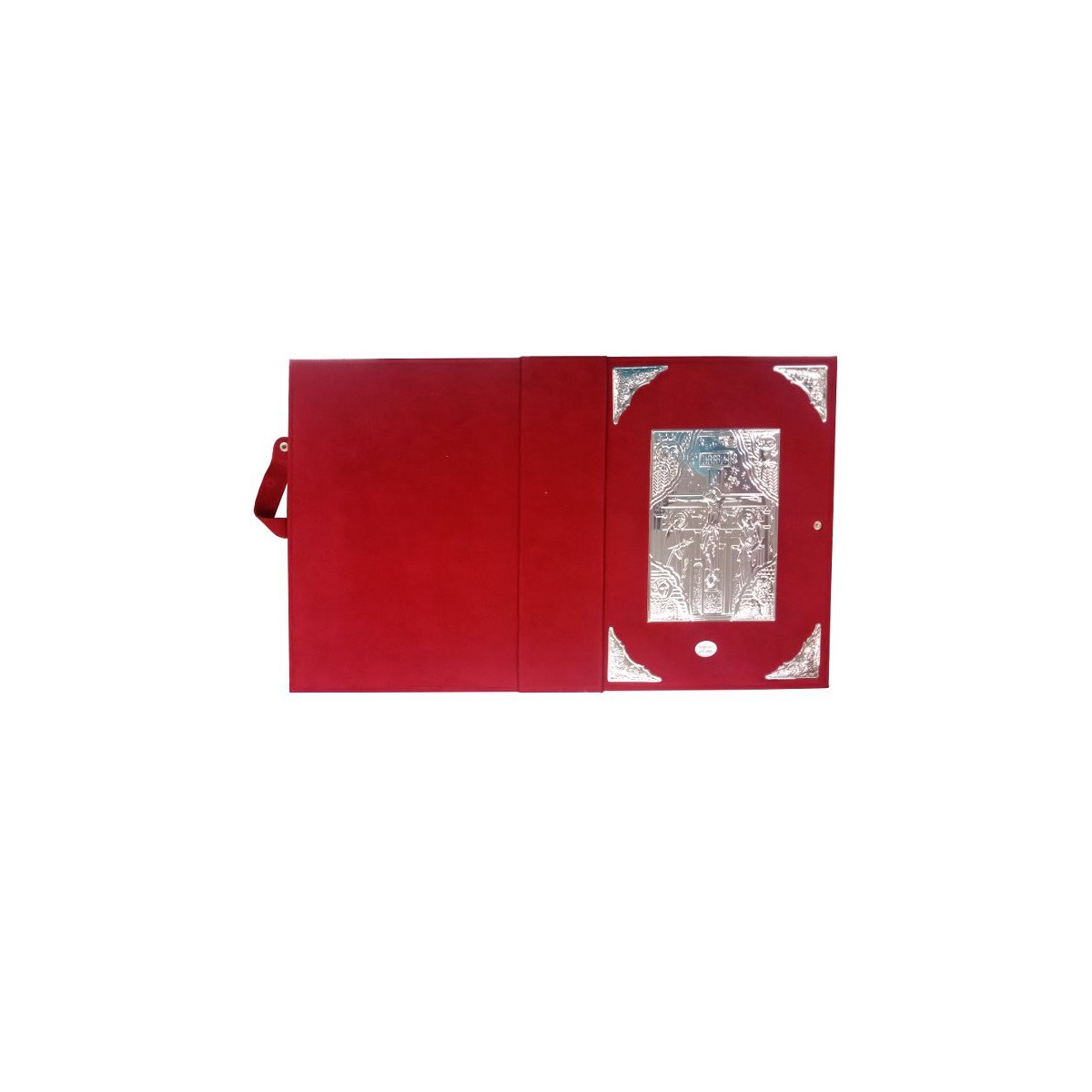 Pregiato custodia per lezionario in velluto rosso con placca davanti in argento.