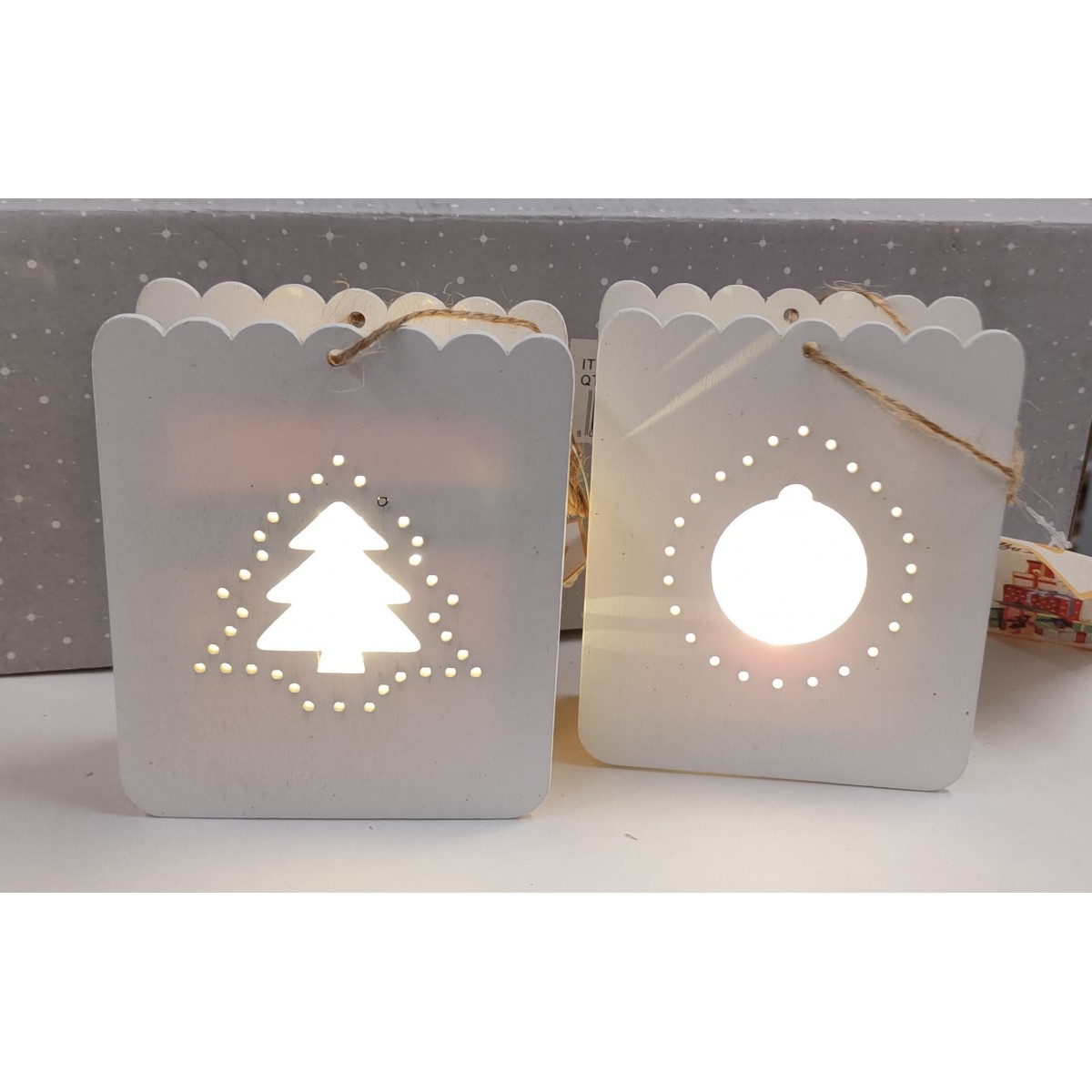 LANTERNA LEGNO BIANCA IMMAGINE A SCELTA: PINO O PALLINA NATALE