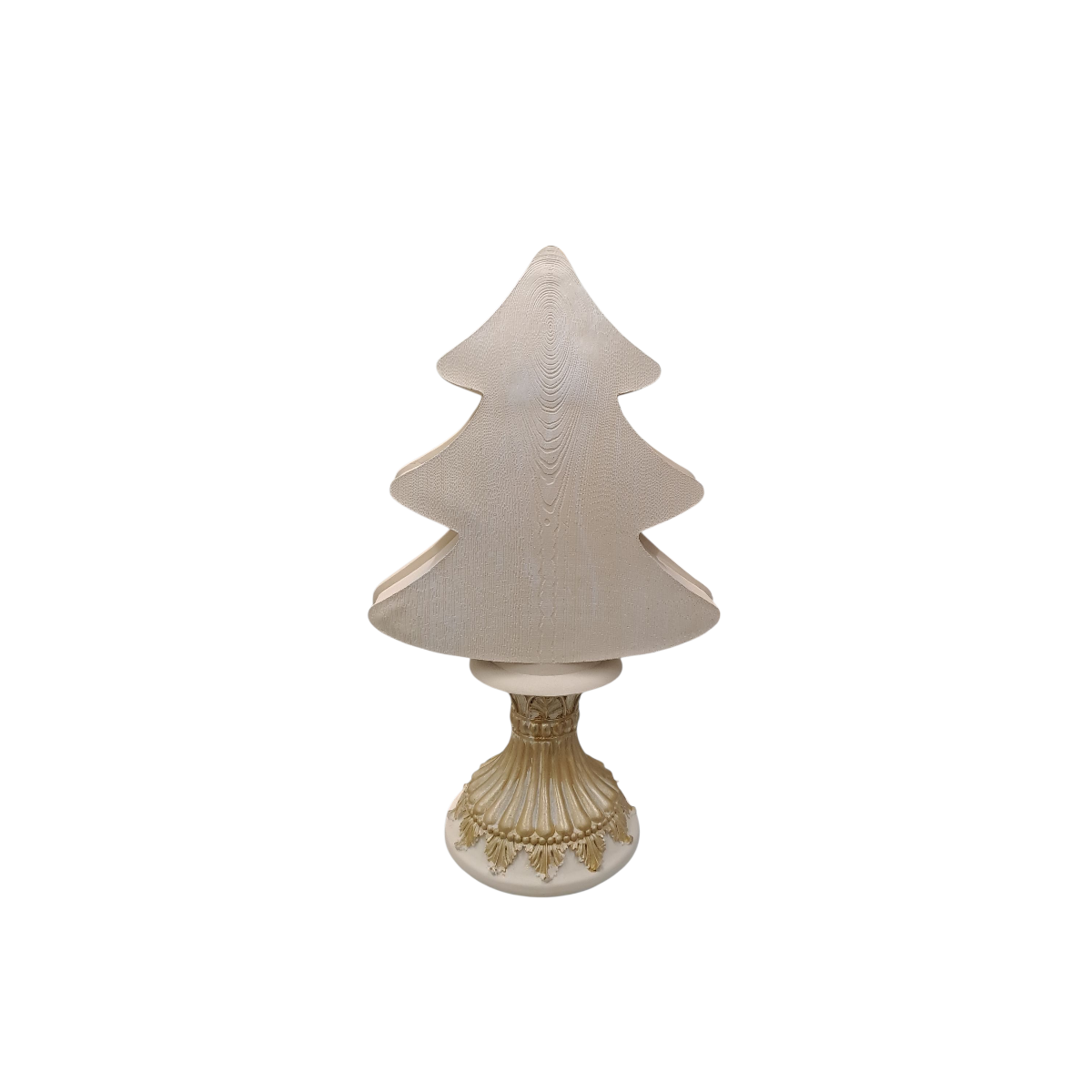 Bella natività con albero di natale realizzata in resina dipinta color oro satinato e crema.