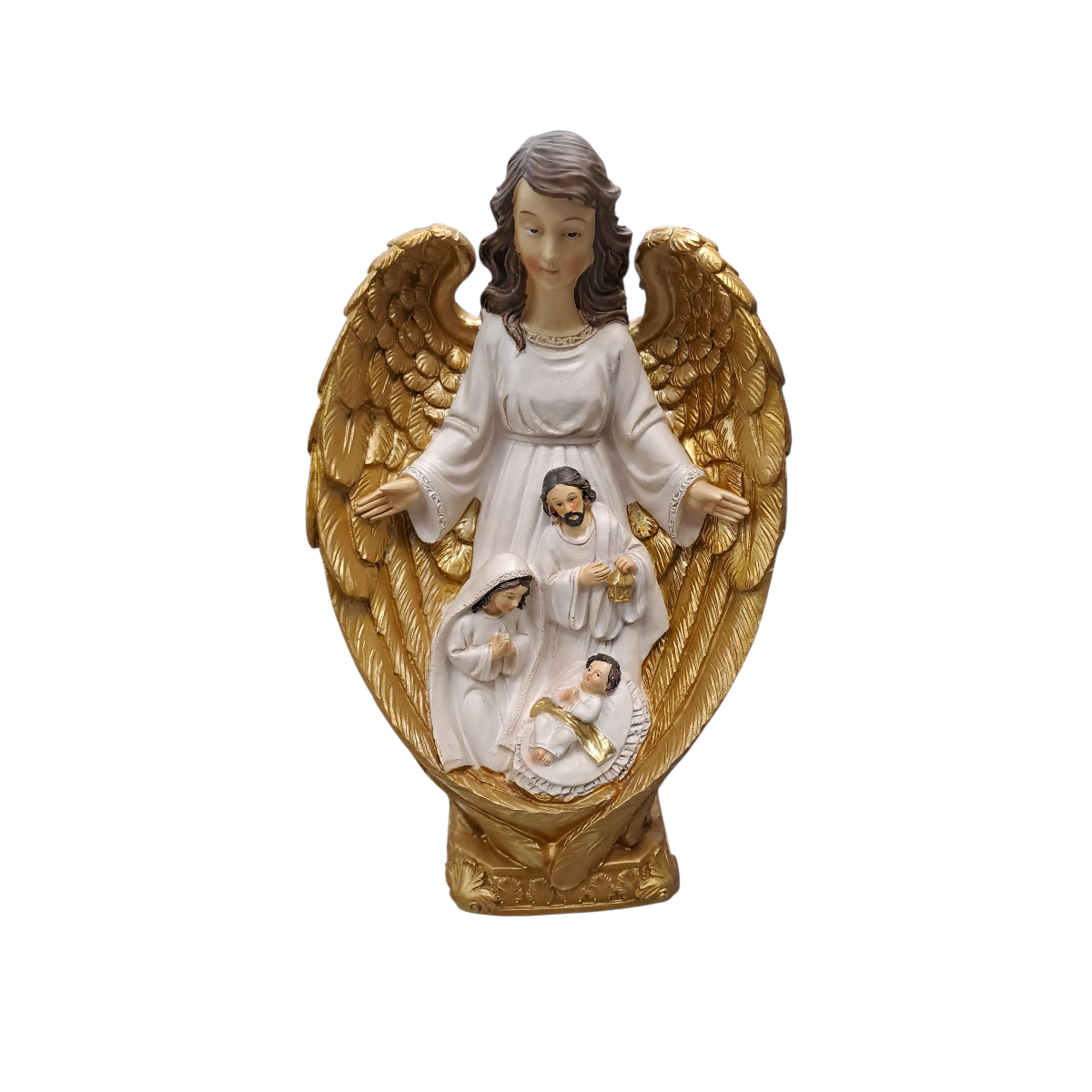 L'Angelo avvolge e protegge la sacra famiglia di Nazaret, Gesù, Giuseppe e Maria