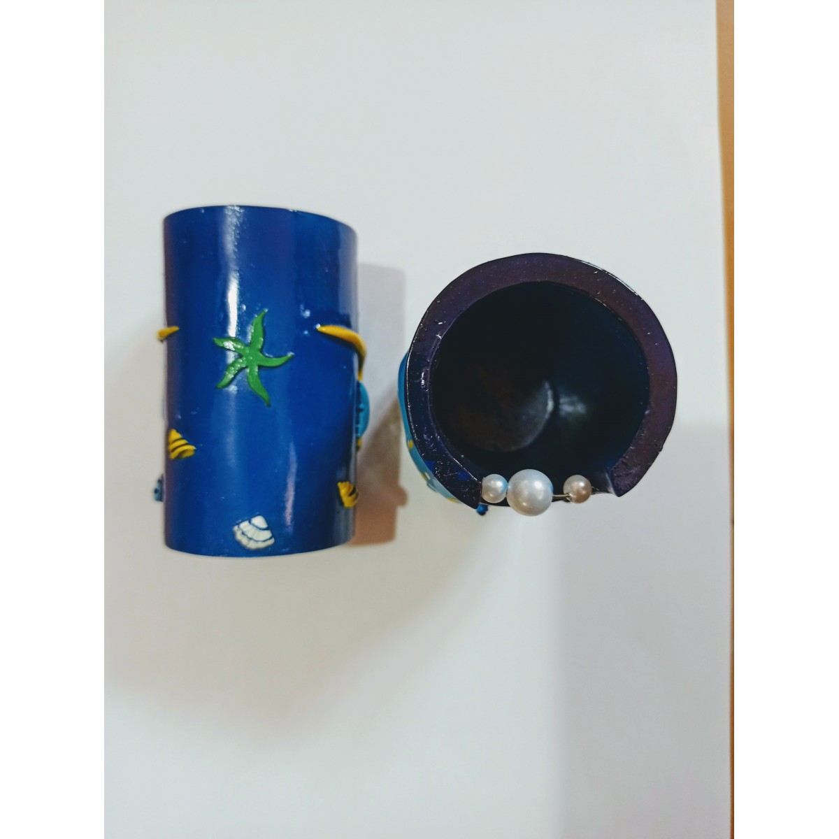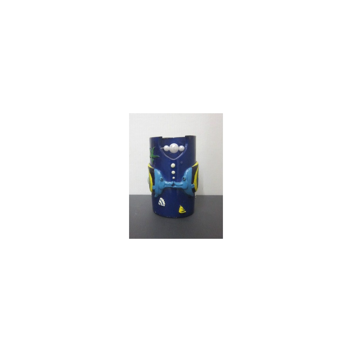 Simpatico portapenne colore blu e giallo, con due pesciolini a rilievo, con diversi decori