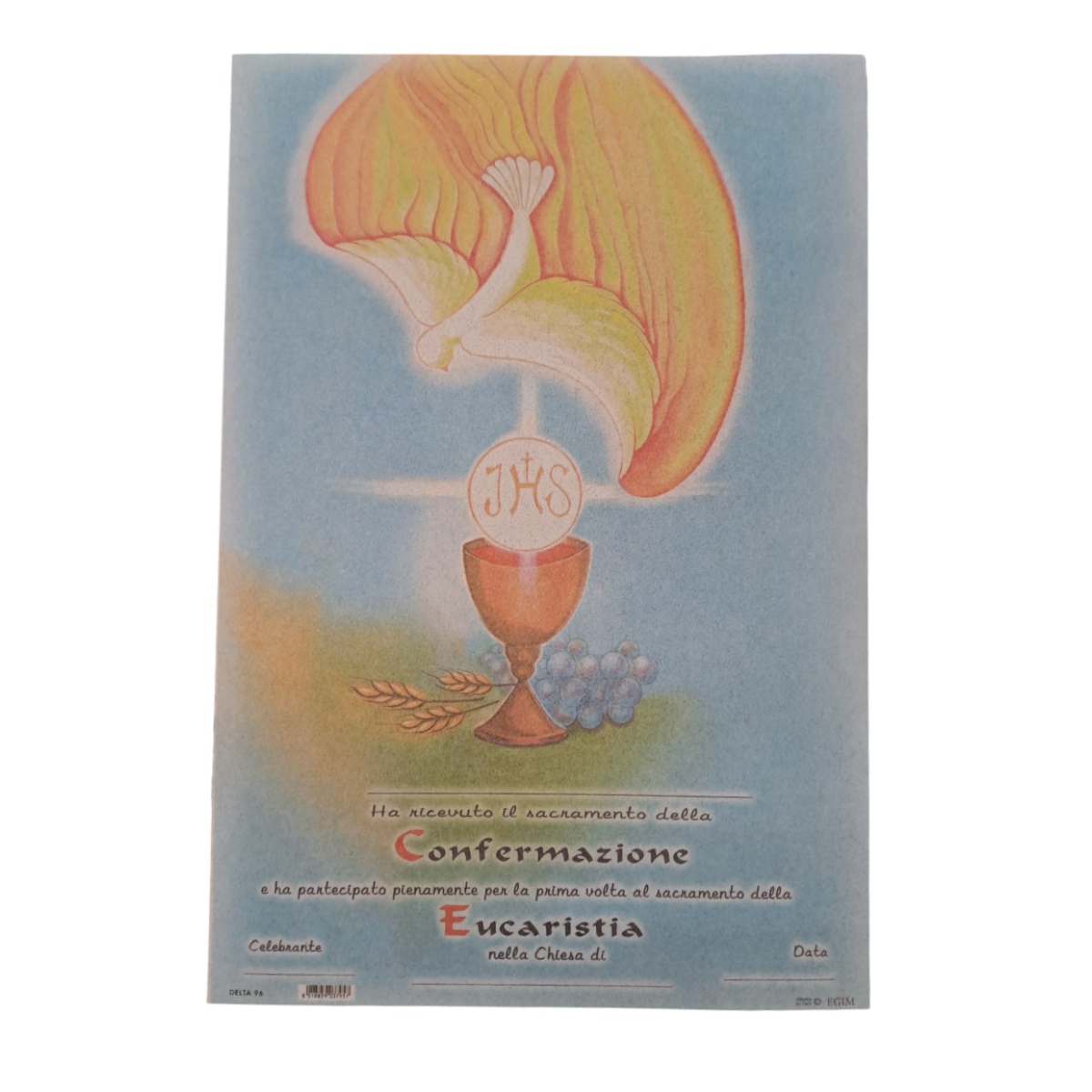 Raffigurato il Calice simbolo della Comunione e la Colomba simbolo della Cresima