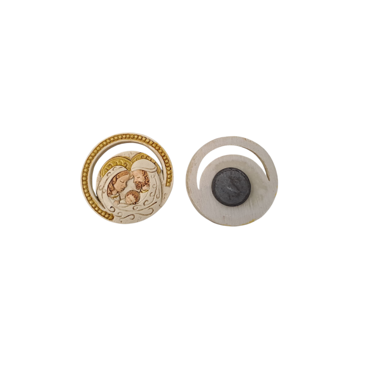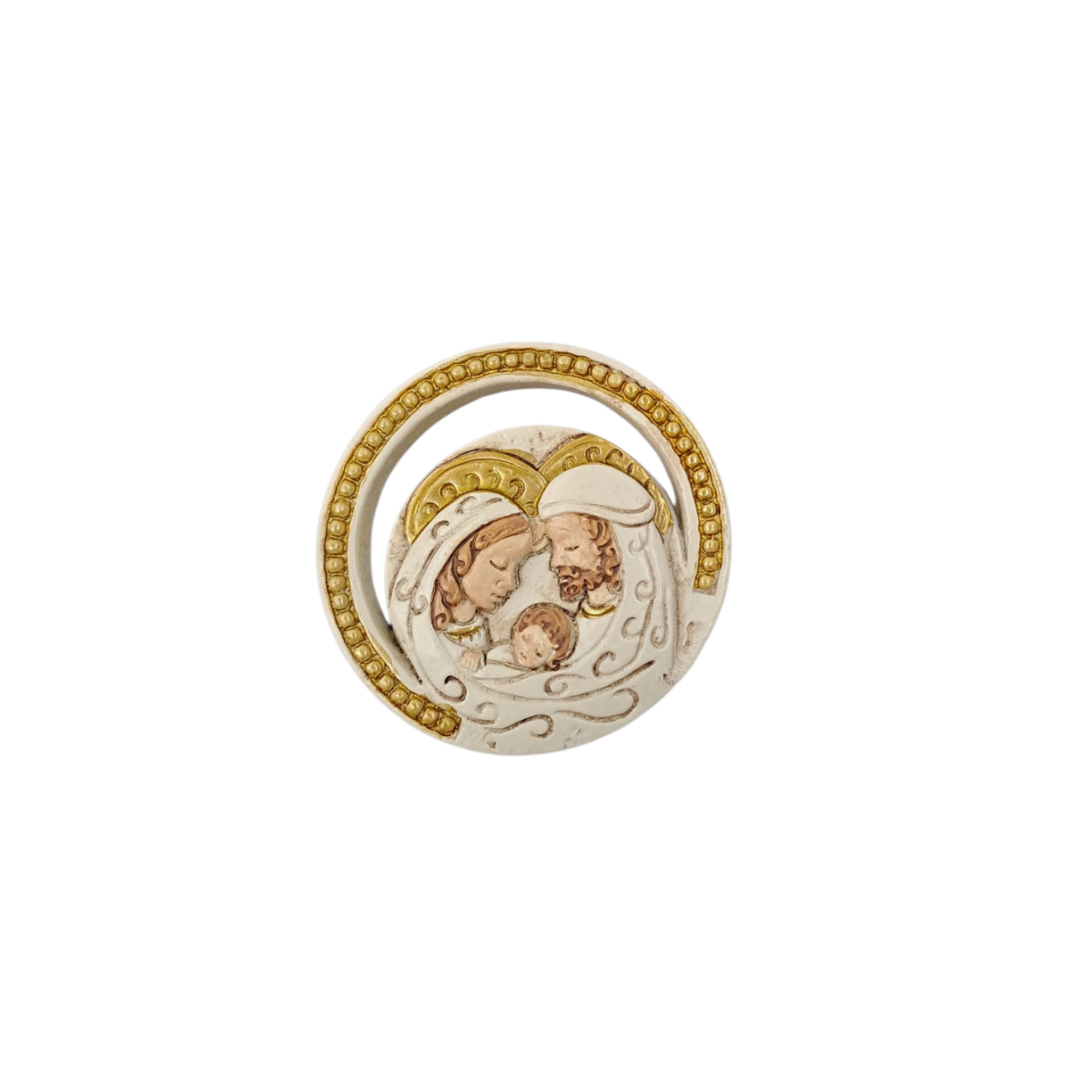 Quadretto in resina circolare sacra famiglia con magnete