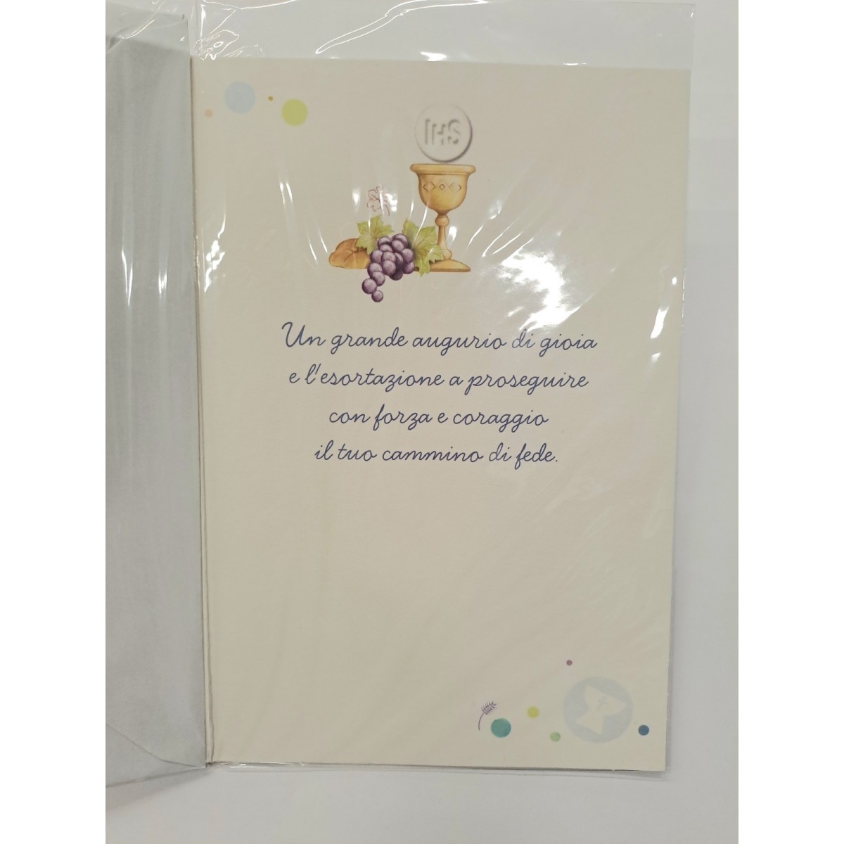 Scritta contenuta: Un grande augurio di gioia e l'esortazione a proseguire con forza e coraggio il tuo cammino di fede