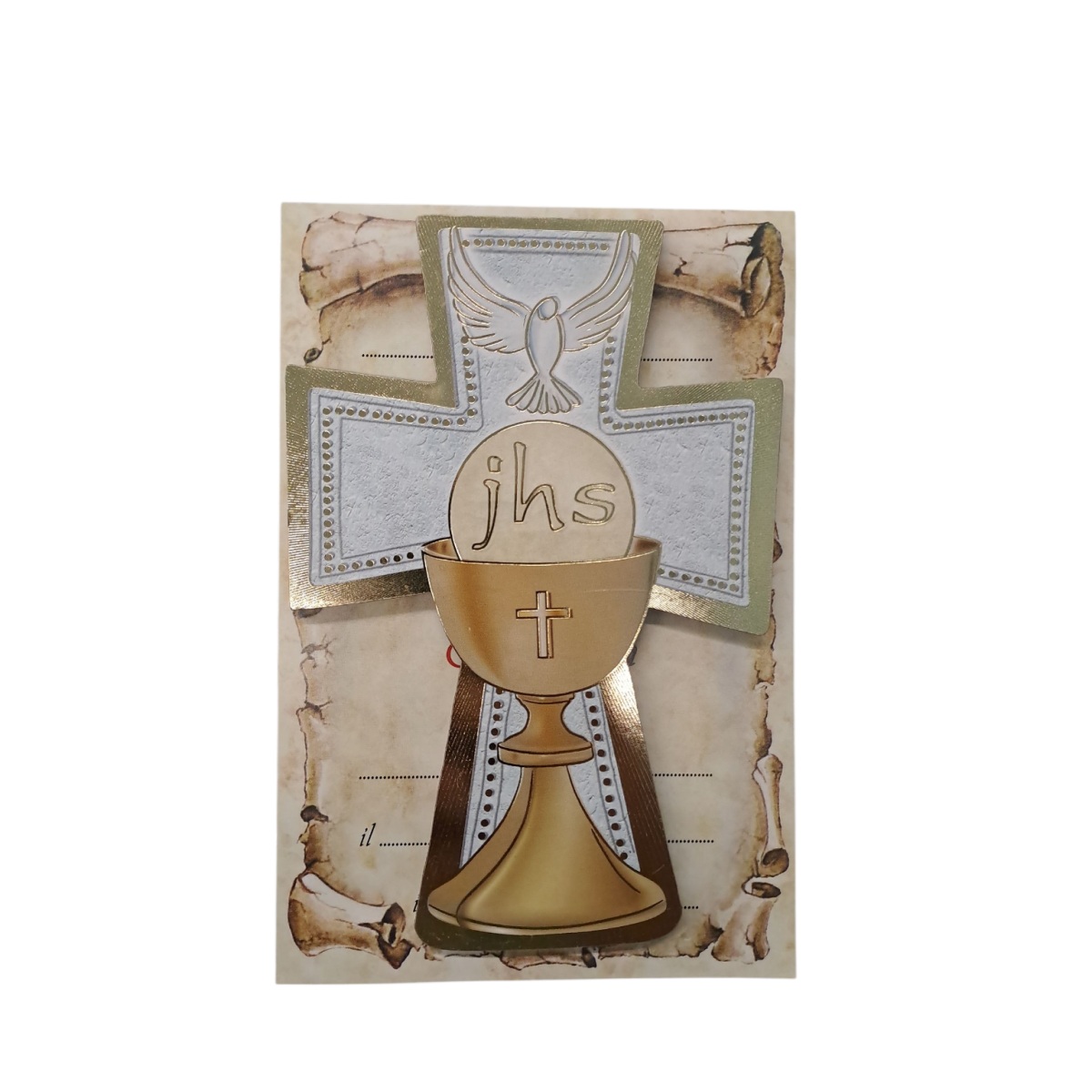 Con Pergamena da compilare con il nome del ragazzo/a o adulto che ha ricevuto la Cresima insieme al sacramento della Comunione