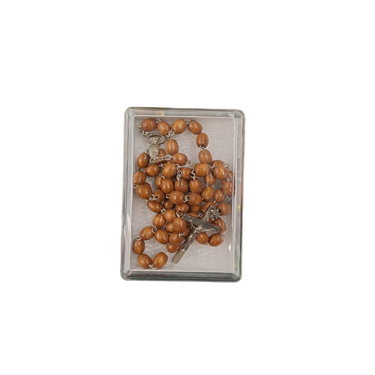 Rosario in Legno munito di scatolina in Plastica, bella idea regalo