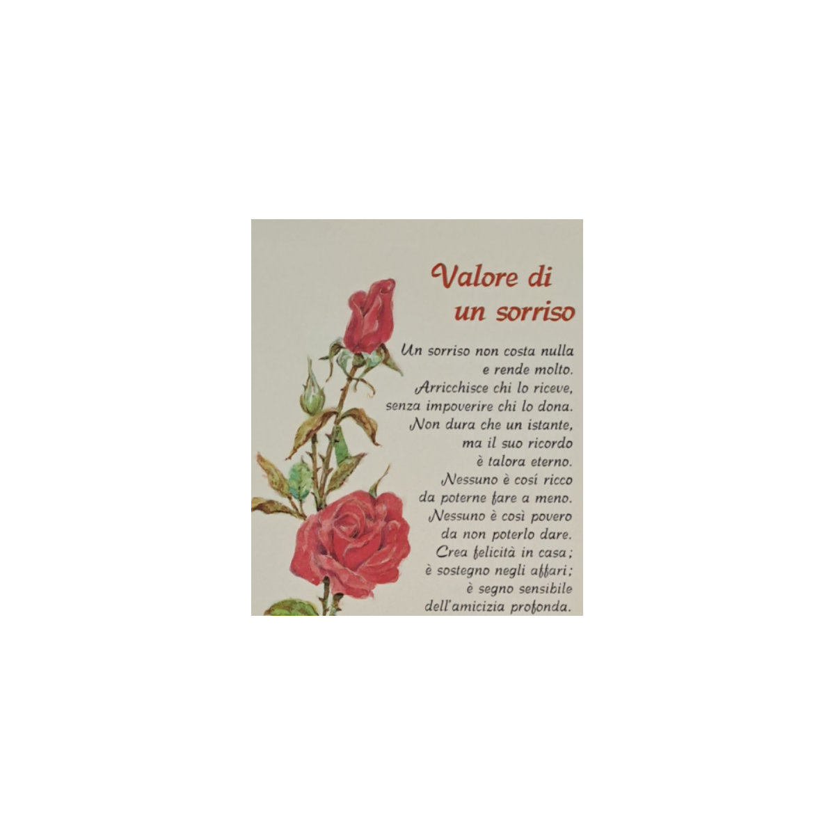 Il "Valore di un Sorriso" è un testo che esalta l'importanza e i benefici nelle relazioni umane e nella vita quotidiana, questo testo sottolinea come il sorriso sia un dono prezioso, capace di arricchire sia chi lo riceve sia chi lo dona.
